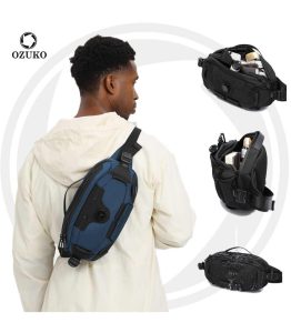 OZUKO 9825 Mini Sling Bag – Water-Resistant Chest Bag with Rotating Compression for Travel & Daily Use